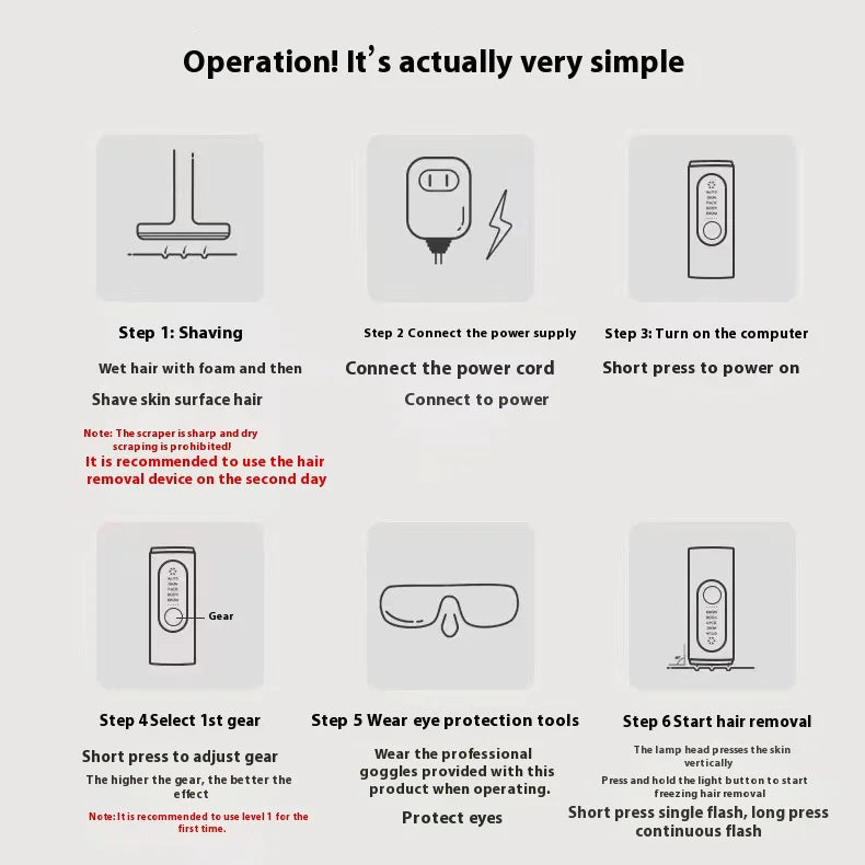 Experience salon-quality hair removal in the comfort of your own home with this freezing point laser hair removal device. Designed for full-body use, including armpits and sensitive private areas, it uses advanced IPL (Intense Pulsed Light) technology to target hair follicles at the root for long-lasting smoothness. The built-in freezing point system provides a cooling sensation, minimizing discomfort during treatment. This lady shaver is a convenient, painless, and cost-effective alternative to traditional hair removal methods.